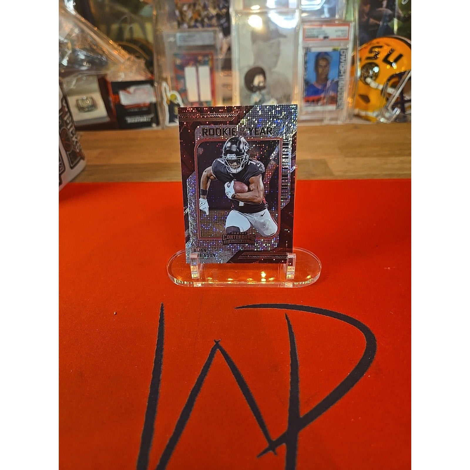 The 2023 Panini Contenders Rookie of the Year Contenders trading card featuring Bijan Robinson, from the Atlanta Falcons, is a highly sought-after collectible for football fans and collectors. As a part of the 2023 Panini Contenders set, this card showcases the talented rookie athlete in a special insert designed to highlight his potential as a future standout in the National Football League. With its unique parallel variety and promising features, this card is a valuable addition to any sports trading card collection.