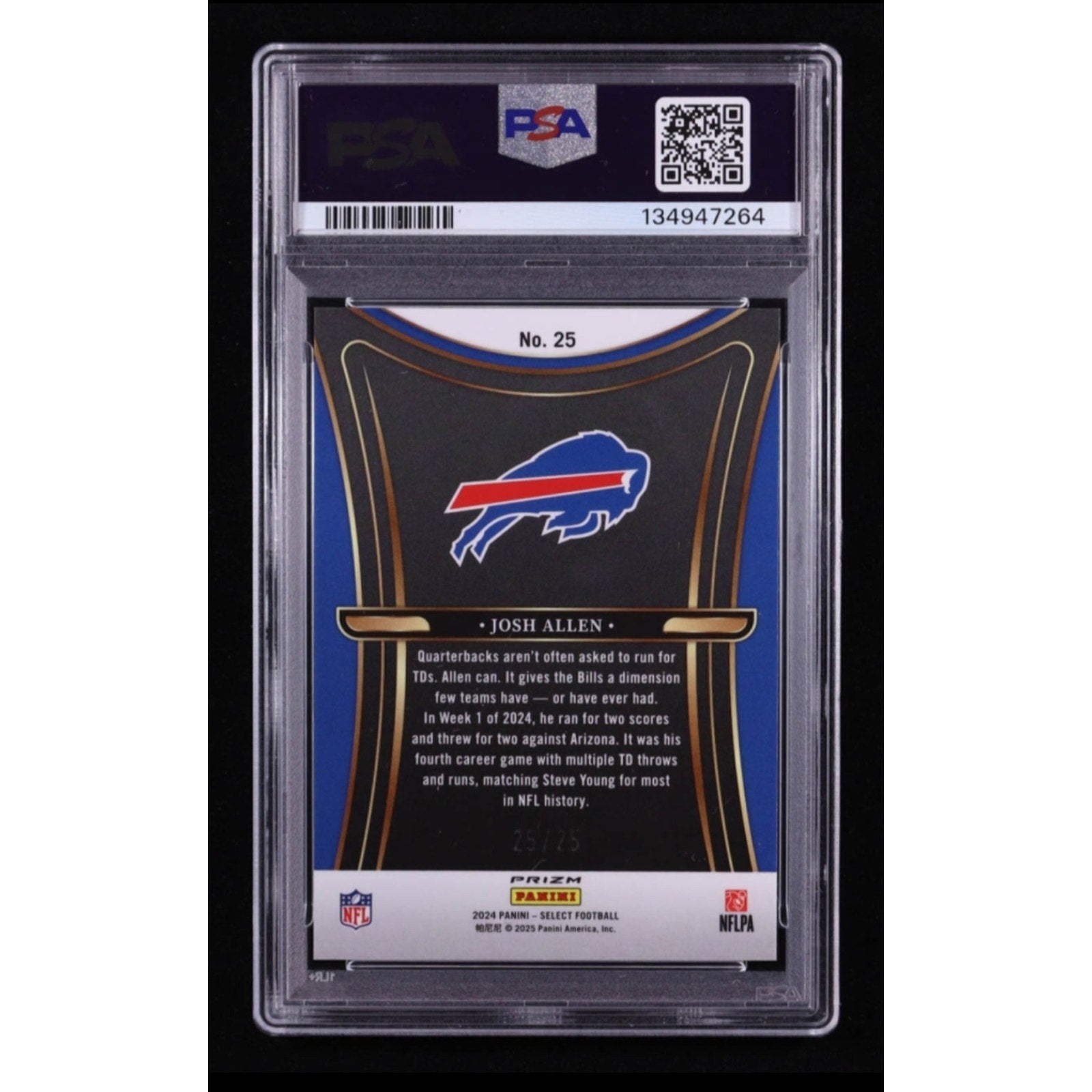 2024 Panini Select Phenomenon Josh Allen #25 Tie-Dye Prizm /25 PSA 9 Gem Mint!