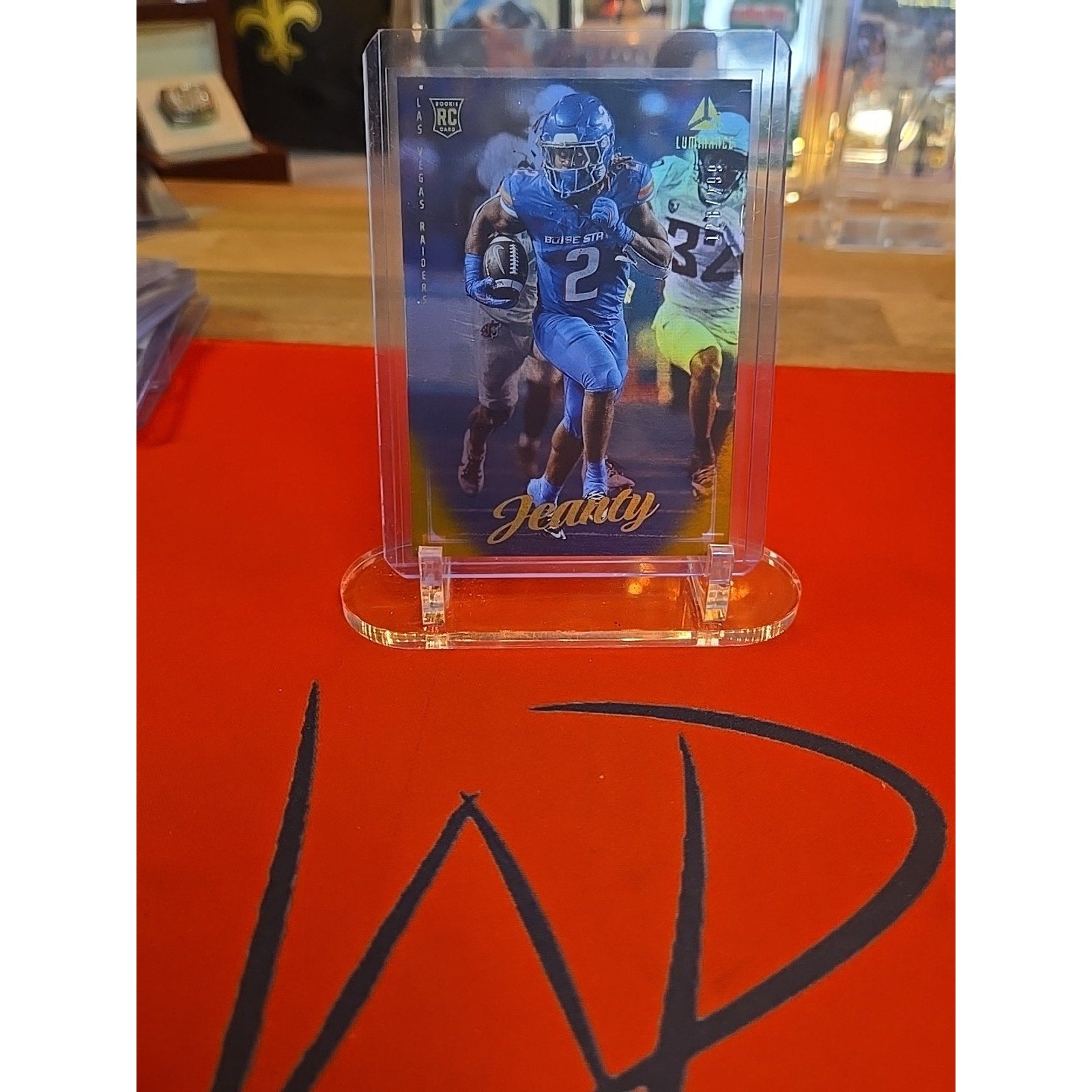 The Ashton Jeanty 2025 Panini Luminance trading card is a rare and collectible item featuring the rookie player from the Las Vegas Raiders in the National Football League. This specific card is a gold parallel with a limited print run of 299, making it highly sought after by football card collectors. With serial numbering and being part of the base set, this card captures a significant moment in Jeanty's career as he begins his professional football journey in the NFL.