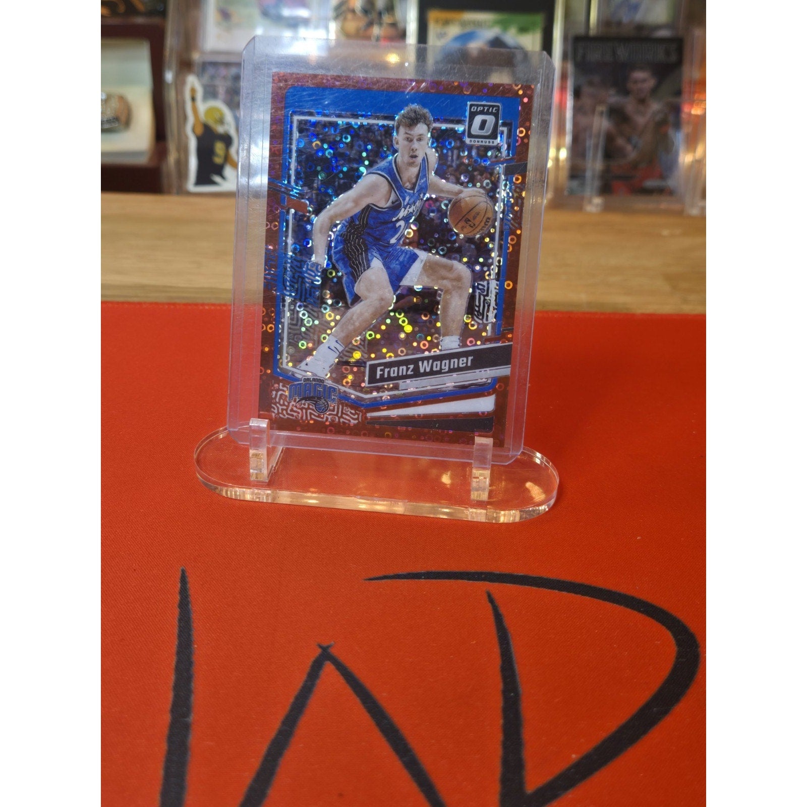 The Franz Wagner/25 Donruss Optic 2023-24 Fast Break Pink Disco Prizm #109 trading card is a collectible item featuring the player Franz Wagner from the Orlando Magic in the National Basketball Association (NBA). This limited edition card is part of the 2023 Donruss Optic set with a print run of only 75 copies. It is a serial-numbered card that would be highly sought after by basketball card enthusiasts and fans of Franz Wagner.