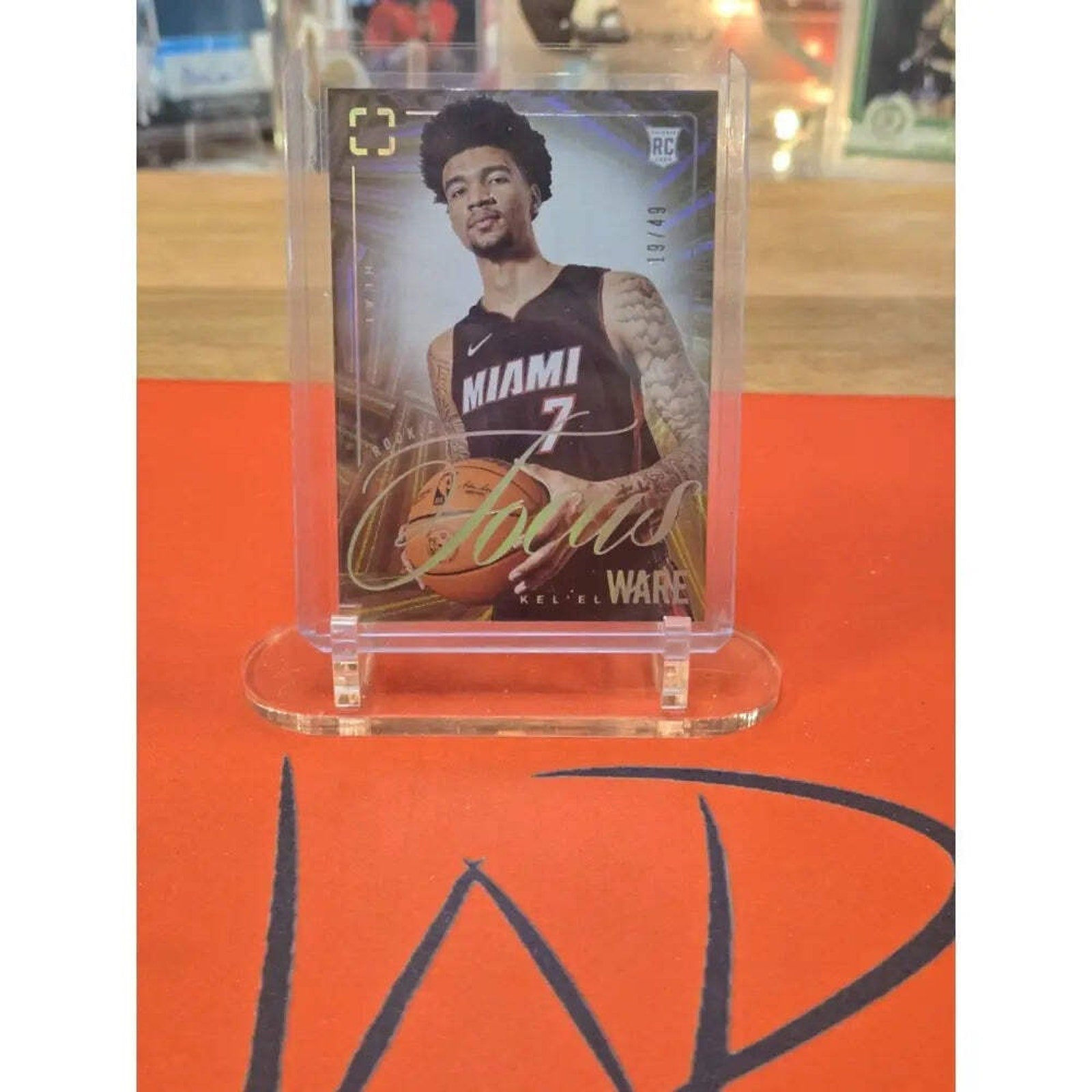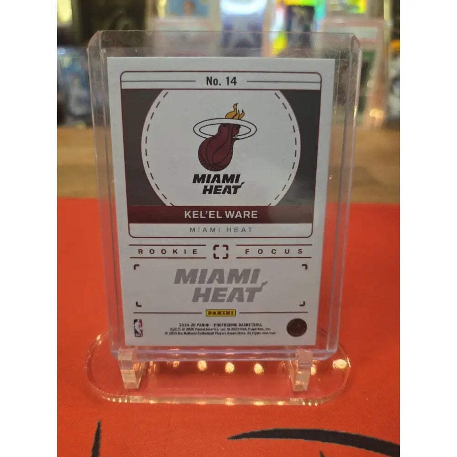 The product is a 2024-25 Panini Photogenic basketball trading card featuring rookie player Kel'el Ware from the Miami Heat. This specific card is a Wedges parallel with a print run of 49, making it a rare and sought-after collectible. The card is part of the base set and is serial numbered, adding to its exclusivity and value among collectors of sports trading cards.