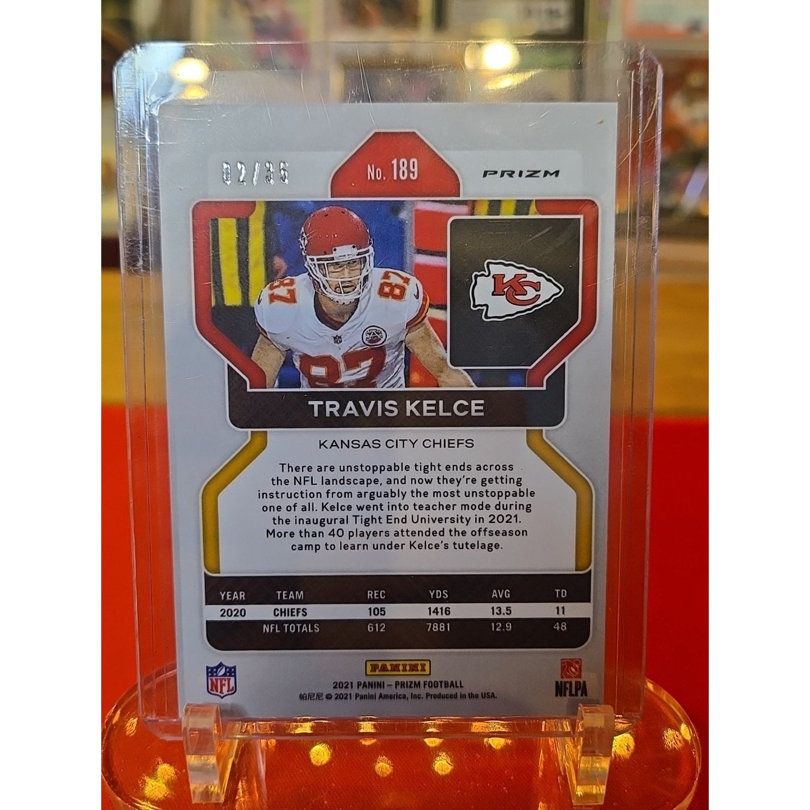 Travis Kelce /35 Purple 2021 Panini Prizm - #189 No Huddle Prizm. Condition is Ungraded. Shipped with USPS Ground Advantage.